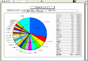 店舗別、品種別に売上統計表の作成が出来ます。グラフとして表示出来るので、分析のタイムロスが発生しません。